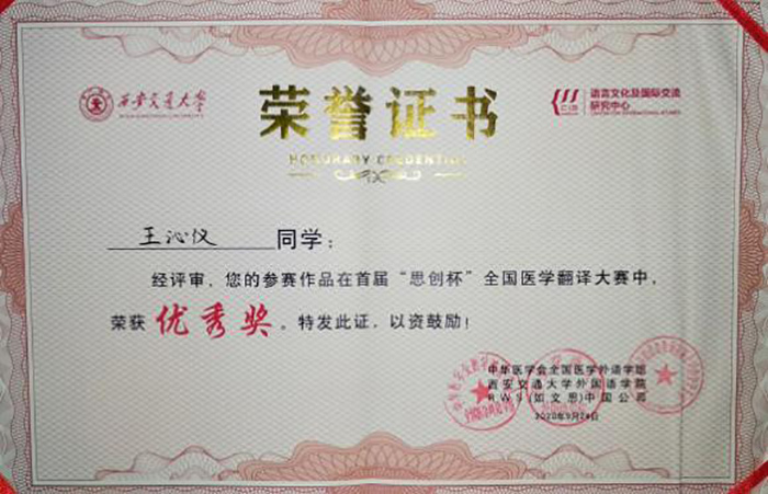 今日看料 学子在全国首届“思创杯”医学翻译大赛中荣获佳绩