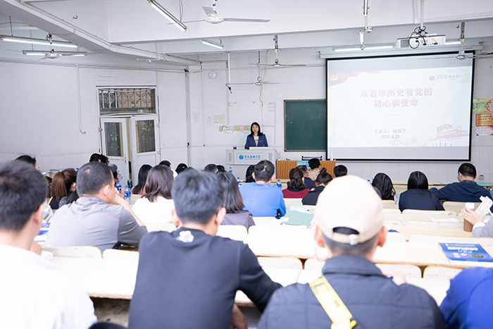 杨秀兰以《从百年历史看党的初心和使命》为题,从“什么是四史”、“为什么要学党史”引入,用一段段可歌可泣的史实、一个个鲜活生动的案例,深入浅出地阐释了为什么中国共产党能从小到大、从弱到强、从一叶扁舟到巍巍巨轮;为什么中国共产党能领导中国人民,从站起来、到富起来、再到强起来!从而梳理了党的发展脉络,阐述了党的百年奋斗历程,并将这一历程的制胜法宝概括为:科学的理论指导、坚定的理想信念、强大的组织优势、坚实的群众基础及彻底的自我革命。