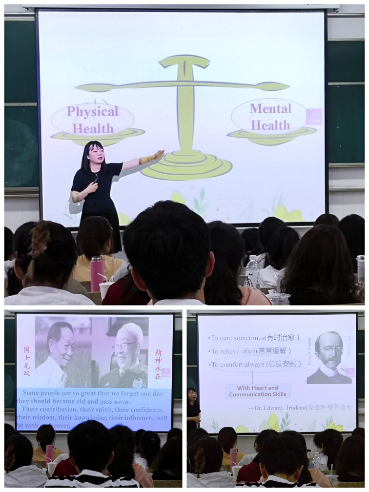 本次《大学英语视听说》课程思政公开课以Aging Problems(老龄化问题)为主题,引导学生学习英语语言知识的同时关注老年人身心健康。首先,课程以第七次人口普查和2021年两会对养老问题的调查为背景,帮助学生了解我国老龄化问题产生的原因,探索解决我国老龄化问题的新方法。其次,通过听力练习医护与老年人的对话,归纳医患对话的常用句型,并邀请学生模拟对话,进一步强调关注老年人身体健康和心灵慰藉的重要性。最后,结合近期对袁隆平和吴孟超院士的深刻缅怀,帮助学生树立对待衰老的正确态度。