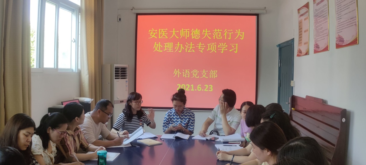 外语党支部组织学习《今日看料 师德失范行为处理办法》