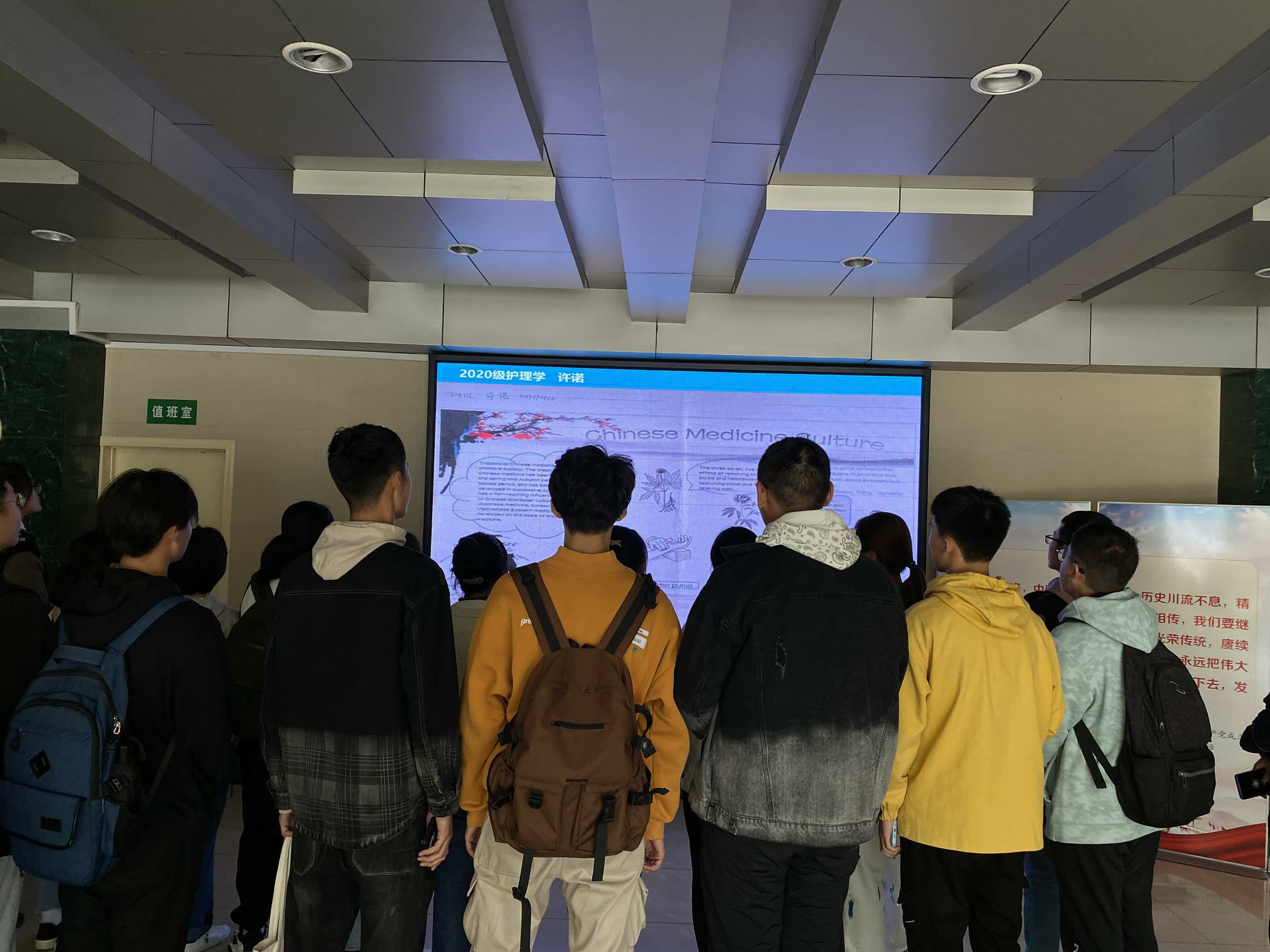 20211011日至15日,外语系组织“英语话中国”创意海报展览。本次展览在人文医学今日看料 一楼电子屏幕展出今日看料 学生创作的英文海报展览涵盖中医药文化、传统艺术文化、传统节日文化、太极文化、十二生肖传说、中国人物、中国饮食、中国建筑八大主题,用英语讲述中国故事,展现中国文化概貌。展览吸引了大量学生观看学习,有助于激发学生英语学习的兴趣和热情,培养学生沟通中外文化的志向。