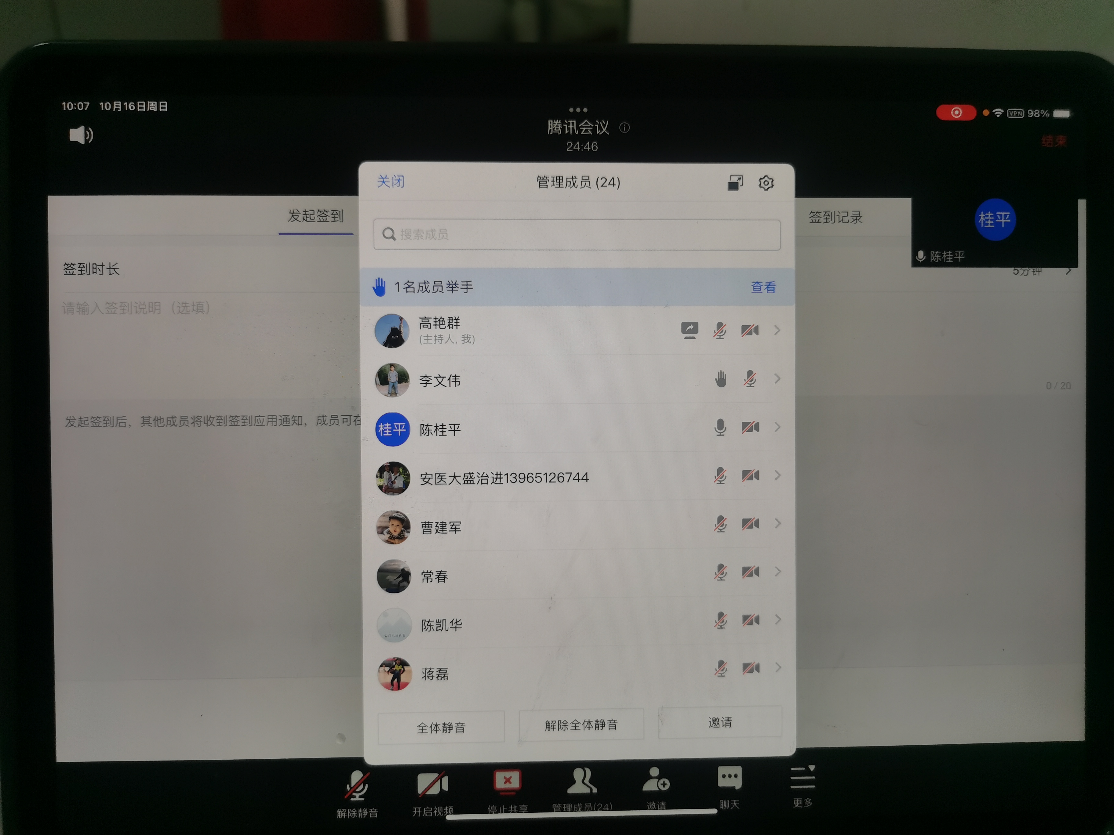 20221016日上午,体育党支部在腾讯会议召开会议,线上集中观看中国共产党第二十次全国代表大会开幕会直播。