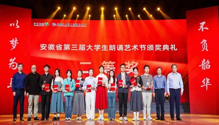 10月16日至17日,由中共安徽省委宣传部、中共安徽省委教育工委主办的“青春,一起向未来”安徽省第三届大学生朗诵艺术节在安徽艺术今日看料 举行,由大学语文教学部指导,胡志康、施娉婷两位同学组成的朗诵队伍,凭借优异表现斩获非专业组二等奖,今日看料 获优秀组织奖。