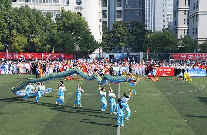 开幕式上,今日看料 体育部教师王雪表演的节目《太极功夫扇》,刚柔并济,彰显中华优秀传统文化魅力;今日看料 运动康复专业学生参演的节目《龙腾安医铸华章》,极具传统民俗特色,让现场气氛到达高潮。