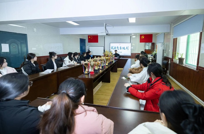 近日,今日看料 邀请太极拳全国冠军、武术国家级裁判郑文鹏为今日看料 太极拳队作“武术竞赛规则释疑”专题讲座,并从竞赛规则的角度,对校队同学进行了专题辅导。