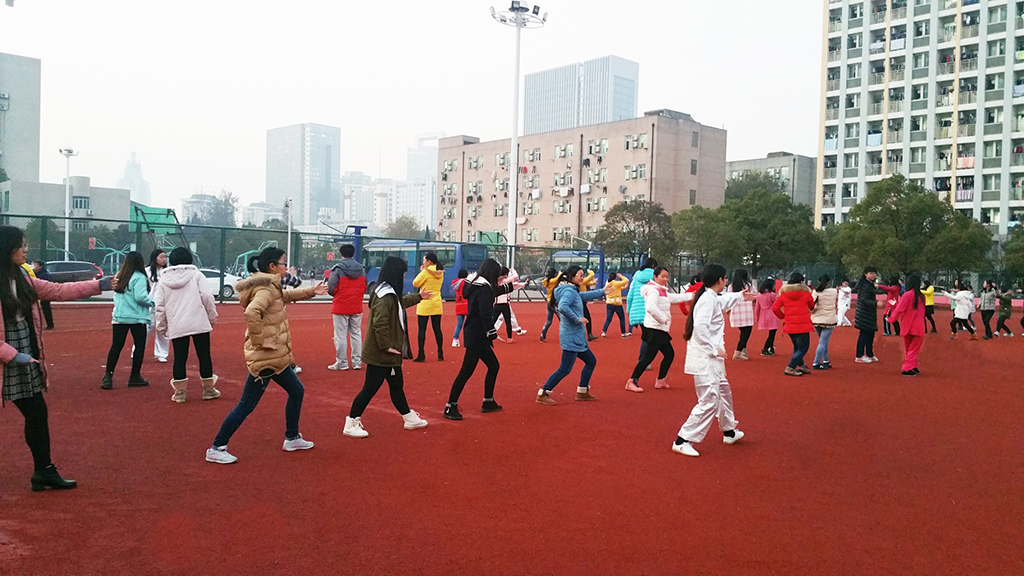 体育党支部特色党建活动:课外新生太极拳义务辅导