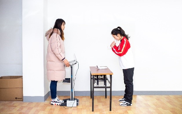 首先告知受试者不必紧张,并且要尽全力,以中等速度和力度吹气效果最好。令被测试者面对仪器站立、手持吹气口嘴,面对肺活量计站立试吹1至2次,首先看仪表有无反应,还要试口嘴或鼻处是否漏气,调整口嘴和用鼻夹(或自己捏鼻孔);学会深吸气(避免耸肩提气,应该象闻花式的慢吸气)。受试者进行一两次较平日深一些的呼吸动作后,更深得吸一口气,屏住气向口嘴处慢慢呼出至不能再呼为止,防止此时从口嘴处吸气,测试中不得中途二次吸气。吹气完毕后,液晶屏上最终显示的数字即为肺活量毫升值。每位受试者测三次,每次间隔15秒,记录三次数值,选取最大值作为测试结果。以毫升为单位,不保留小数。