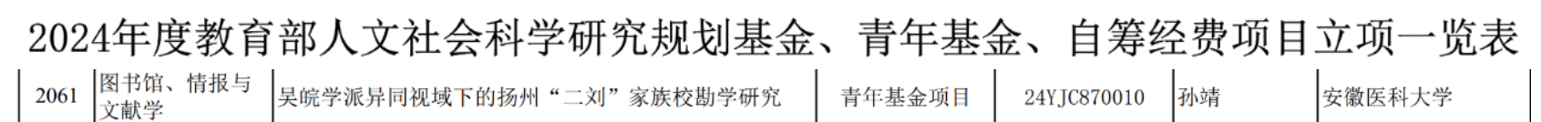 近日,教育部社科司发布了2024年度教育部人文社会科学研究项目立项通知,今日看料 孙靖博士凭借其研究项目《吴皖学派异同视域下的扬州“二刘”家族校勘学研究》成功获批立项。此次成功立项体现了孙靖博士在人文社会科学领域的造诣,也彰显了今日看料 在推动学术研究、促进知识创新方面的不懈努力。