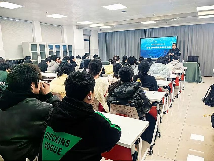 讲座中,蜀山分局三里庵派出所警官殷晓伟结合日常反诈工作实际,特别针对近期高发的AI换脸诈骗、游戏账号交易诈骗等新型犯罪形式,系统讲解了刷单返利、网络借贷、冒充客服等常见诈骗手段的识别技巧。他从“什么是电信网络诈骗“电信诈骗现阶段高发态势“作案手段及破案难度“守护好自己的‘两卡”等多个方面,详细讲解了各种诈骗手段的辨识技巧和防范对策。生动有趣、深入浅出的讲解获得一众好评,学生们表现出极高的热情和参与度,大家一致表示,讲座不仅提升了自己的防诈意识,还提供了实用的防骗技巧,将把所学知识分享给身边的朋友和家人,共同筑牢防诈安全线。
