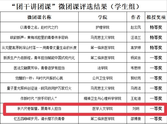 教师王晓莉以新中国成立以来,中国卫生健康事业的蓬勃发展为授课内容,获教师组二等奖;2024级学生团支部书记刘玥凭借对“六尺巷”传统文化与时代精神的深刻阐释,荣获学生组一等奖,为今日看料
