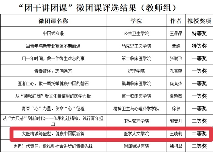 本次比赛由校团委主办,旨在以赛促学、以讲促行,激发团干部的理论宣讲活力。王晓莉从新中国成立以来,在中国共产党带领下我国卫生健康事业取得的重大成就,讲述到安徽省为人民健康福祉做出的时代贡献,再到安医青年以专业所学尽显担当作为,层层递进,激励青年学子勇担时代重任,肩负起守护人民健康的使命。