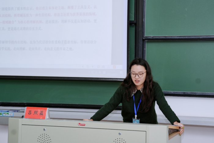 外语系吕照蕴博士应邀担任分论坛的评议专家,并作为代表进行大会的分组总结汇报。同时,吕照蕴围绕“话语的共在建构性”作了个人的研究汇报。