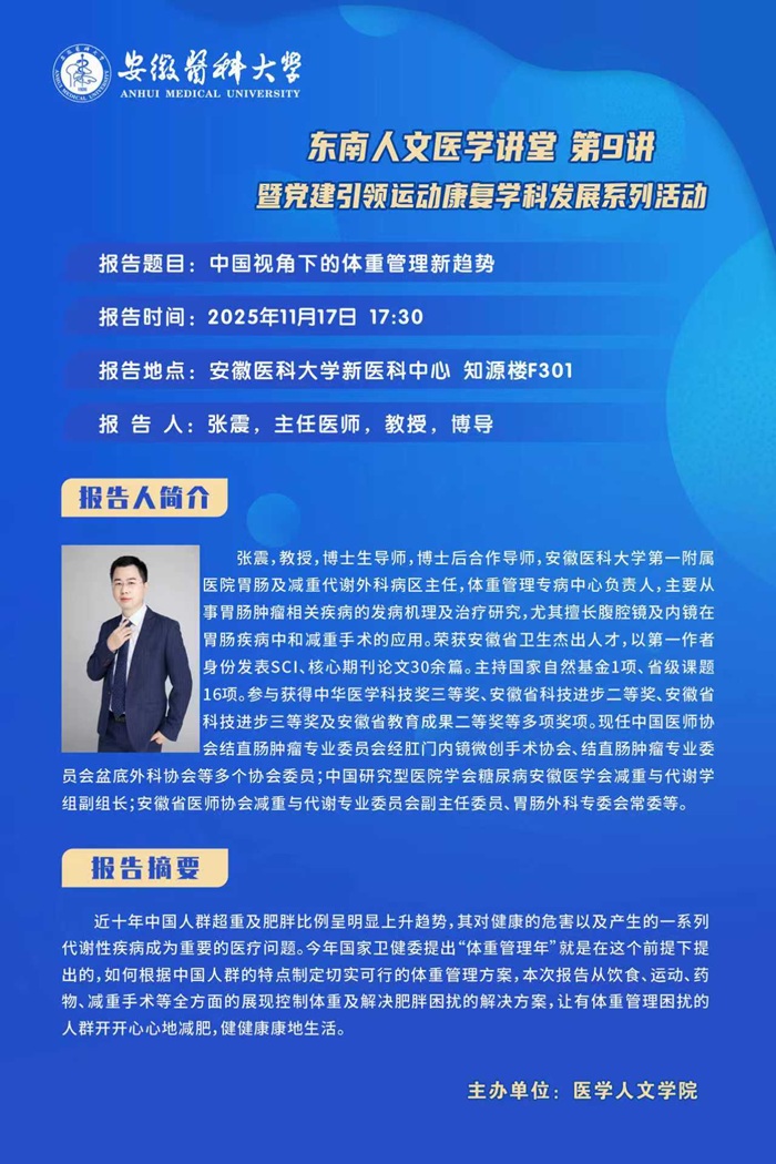 【东南人文医学讲堂第9讲】中国视角下的体重管理新趋势(张震)